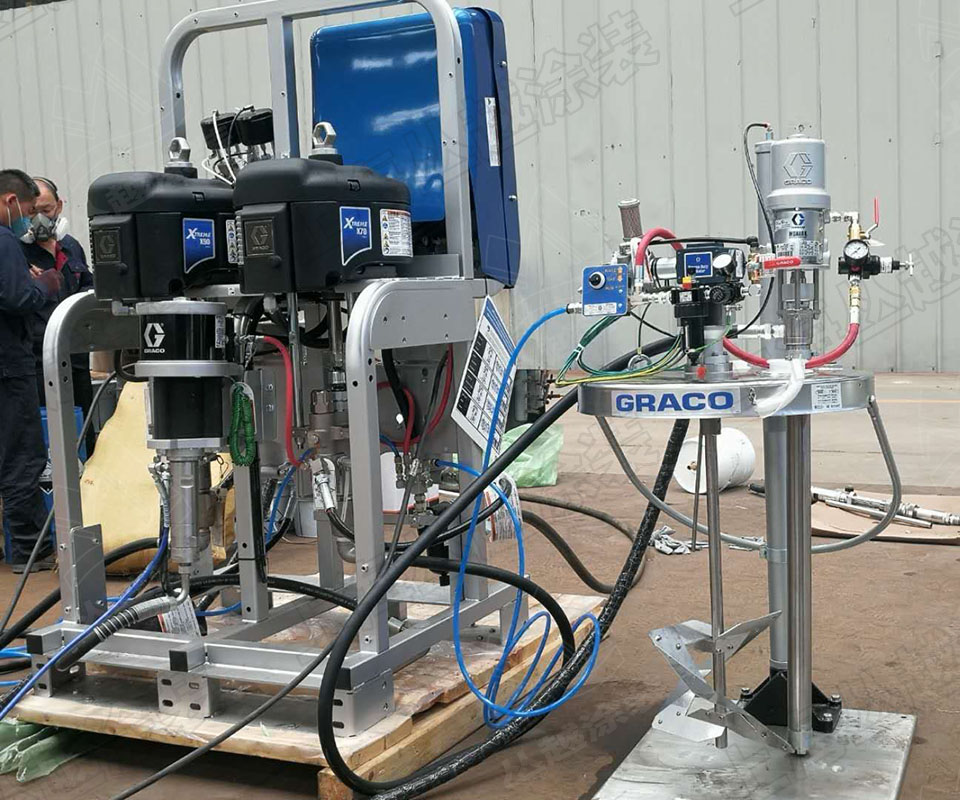 主要设备:XM70双组份高压无气喷涂机,重载搅拌供料升降机,涂料在线加热器