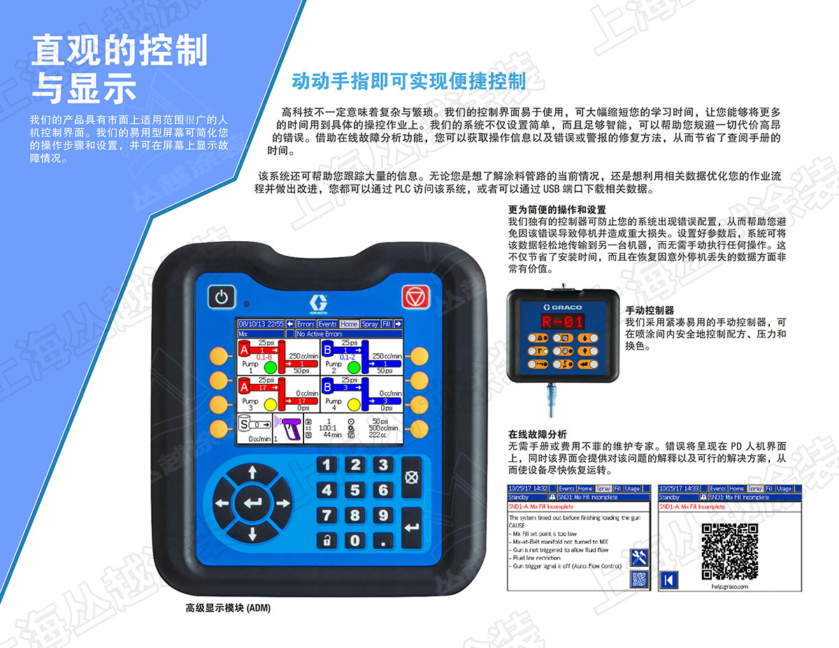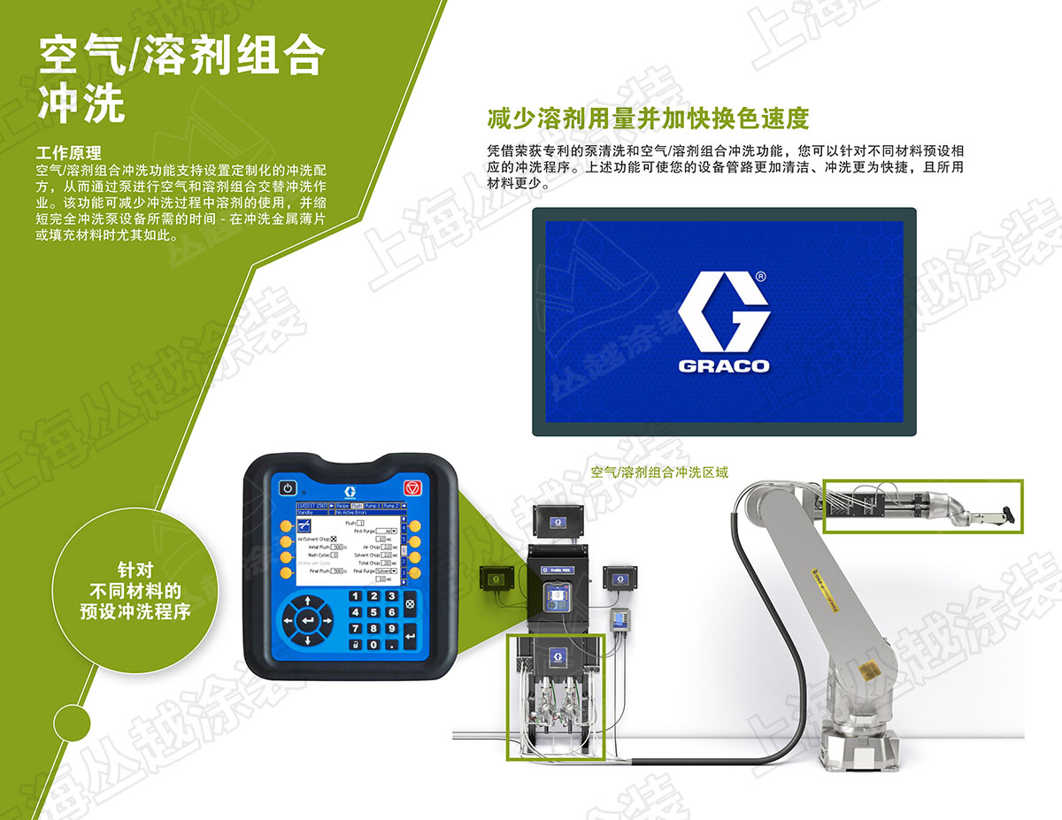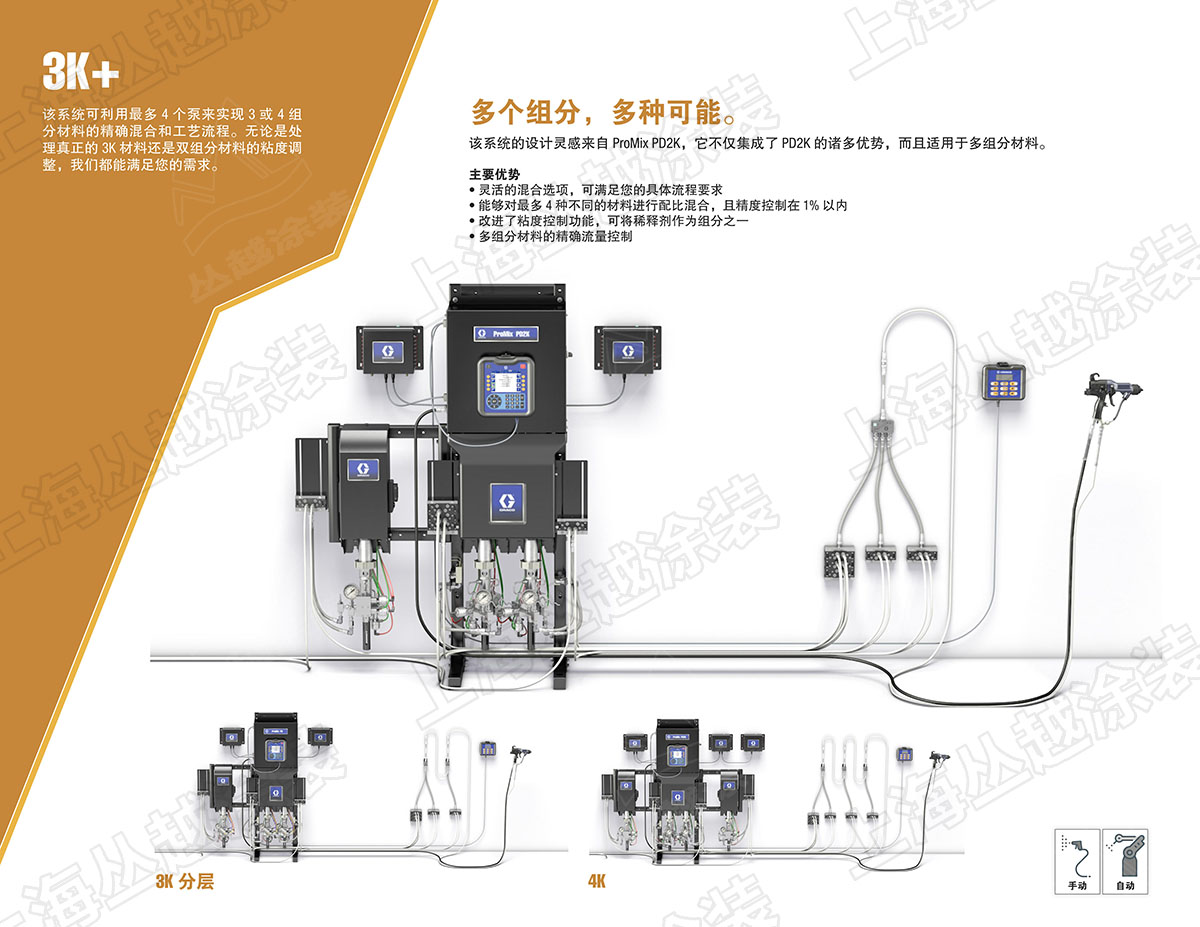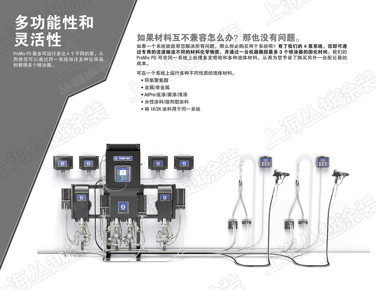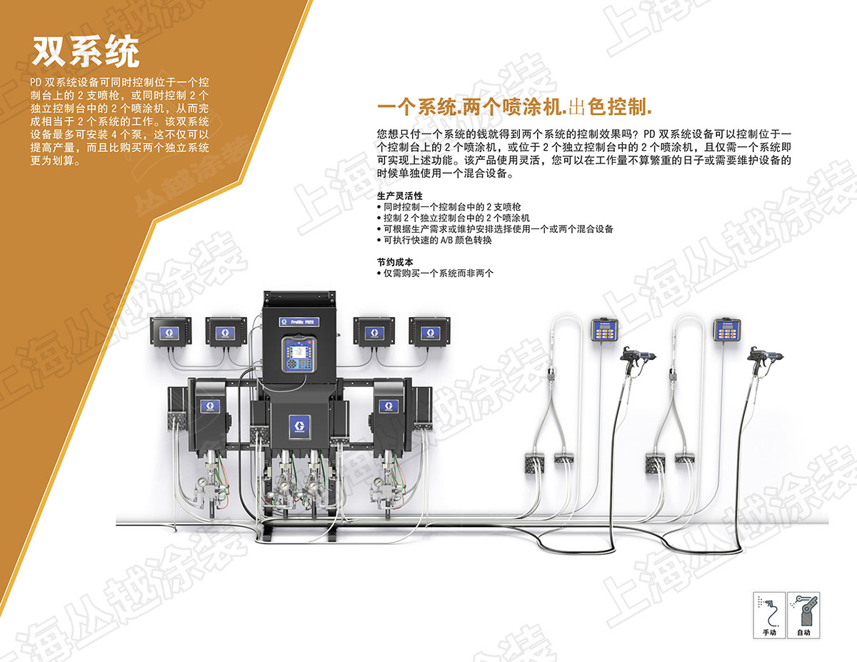 • 可以同时运行4台泵输送不同材料,并同时管理多把喷枪;