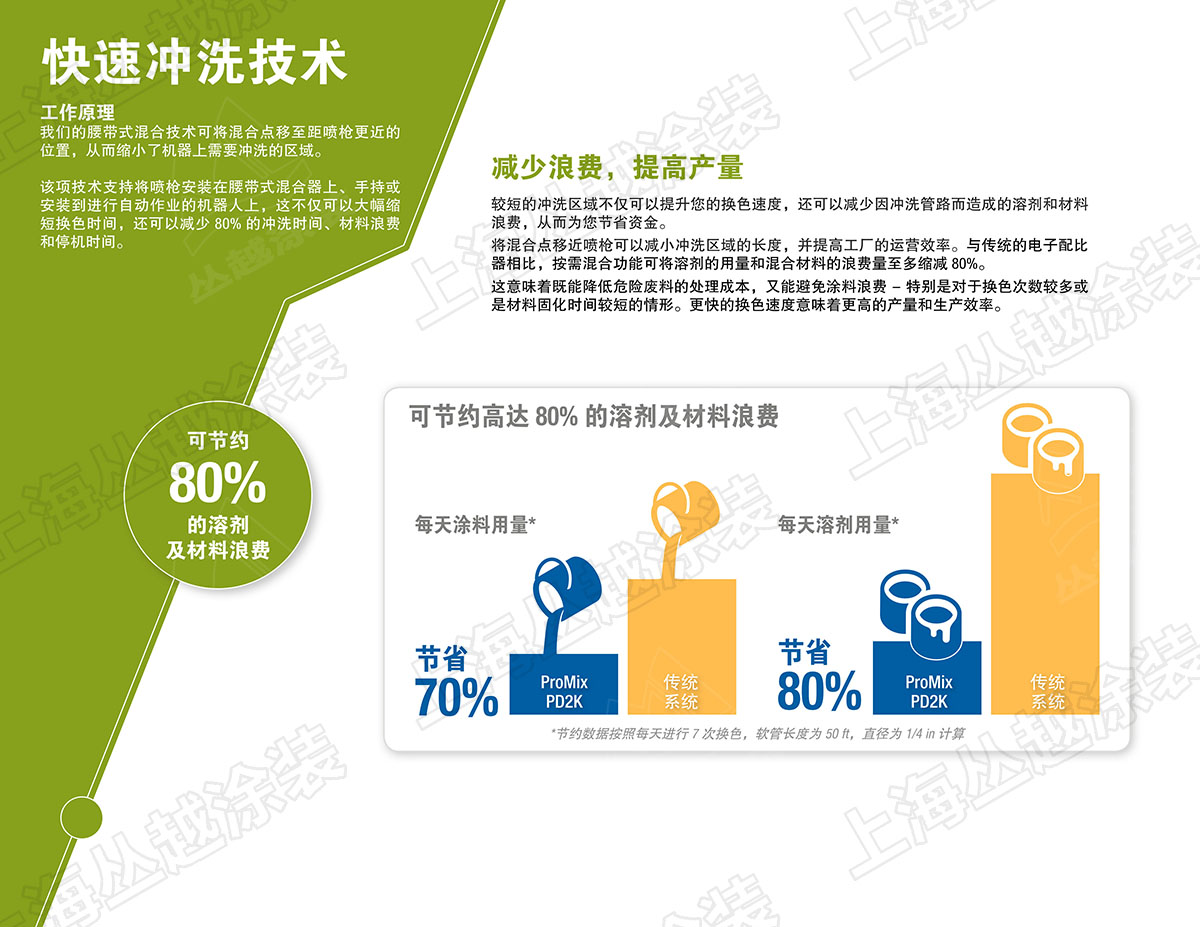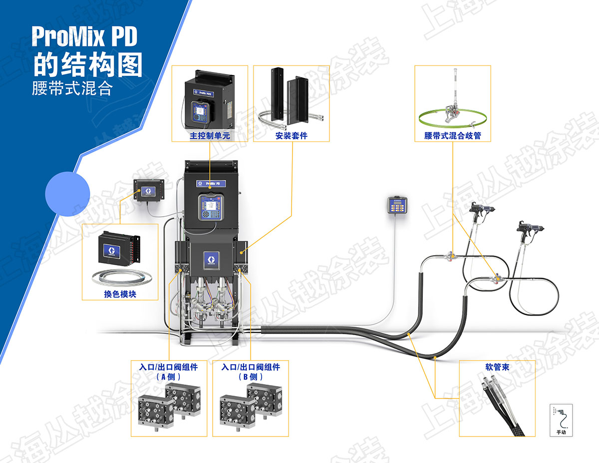 • 腰带式混合技术可在喷枪附近混合材料,减少停机和浪费材料;
