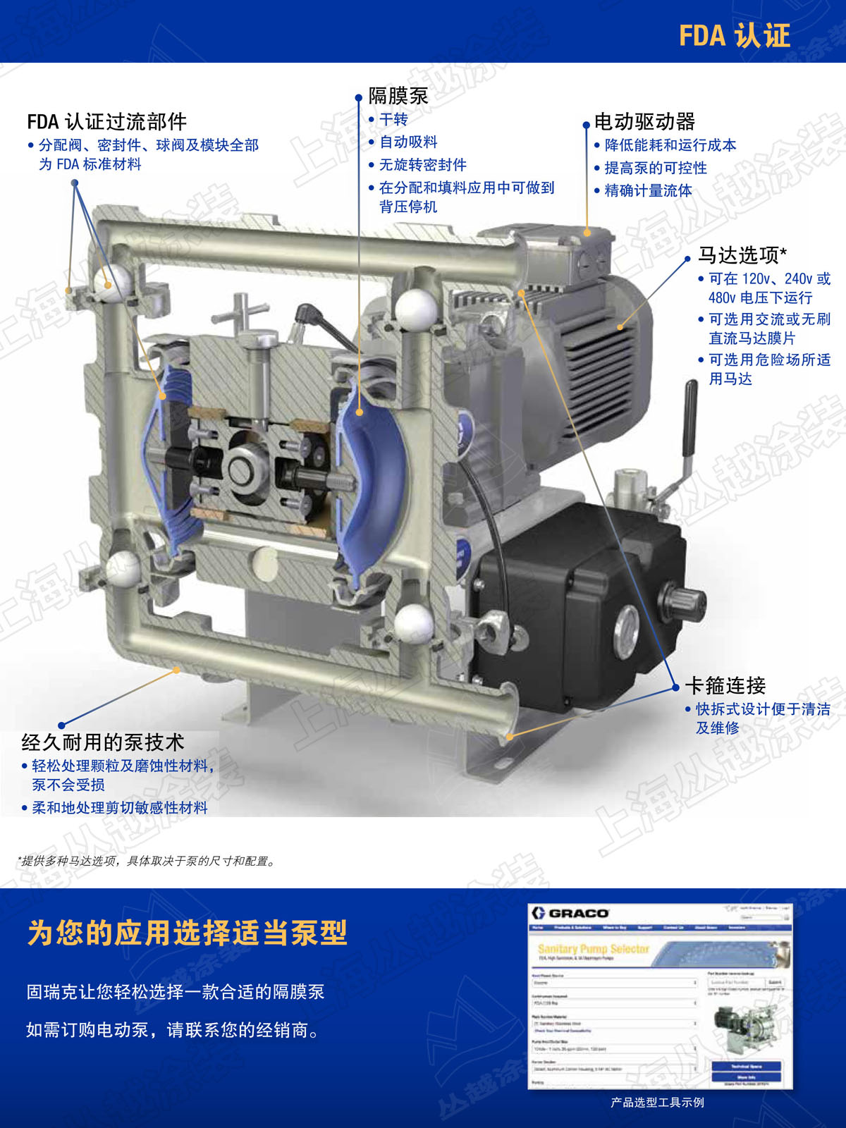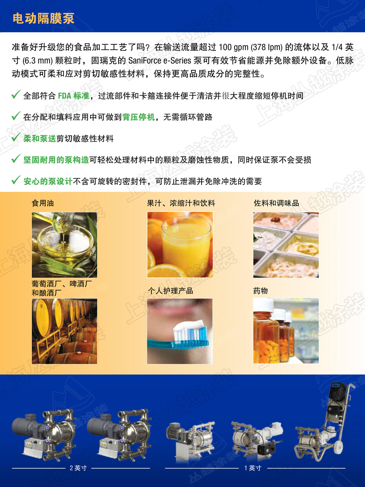 • 可提供适用工业应用的工业泵和医药食品行业的卫生泵;