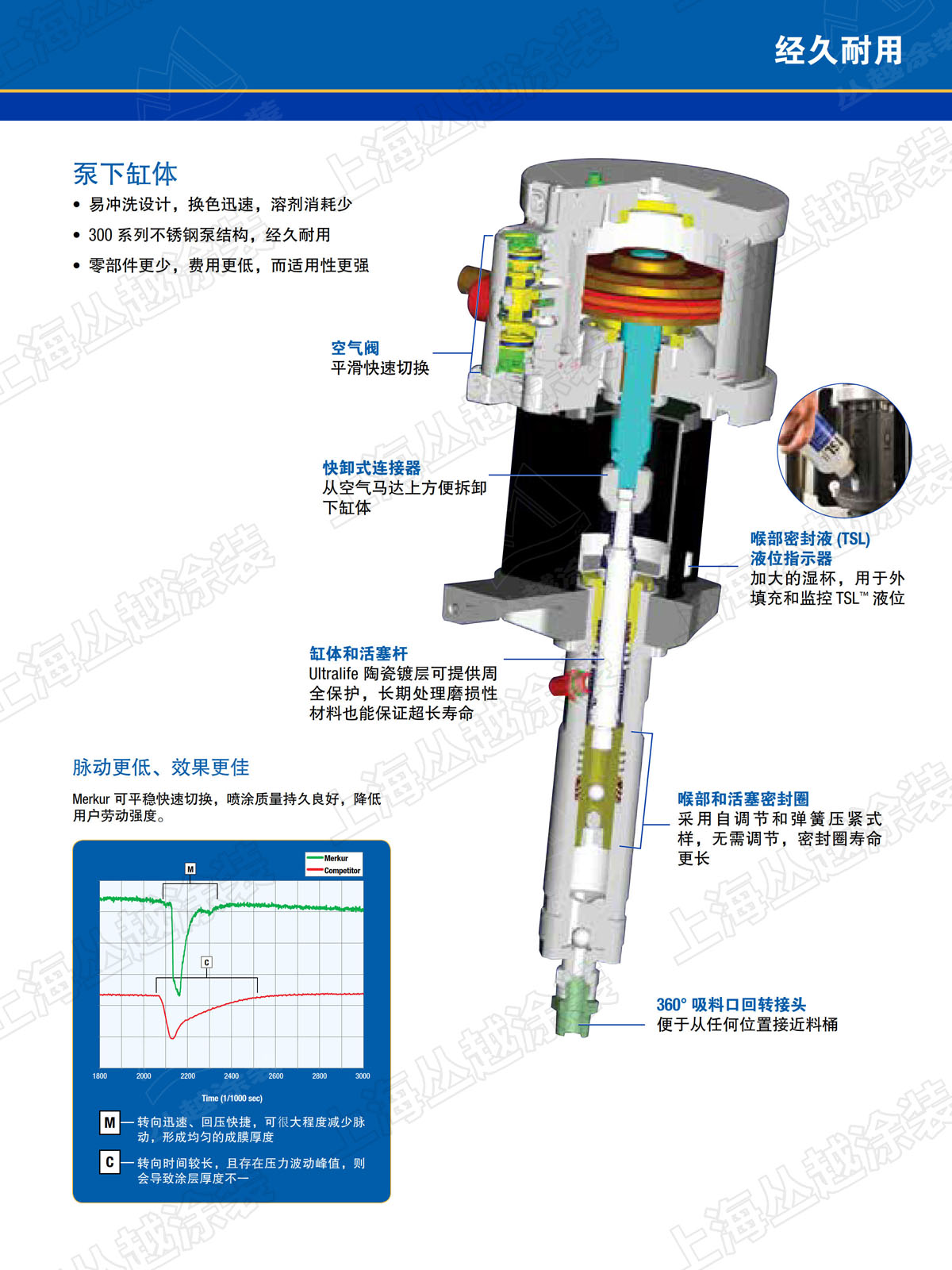• 陶瓷镀层的缸体和活塞杆经久耐用,处理磨损性材料更容易;