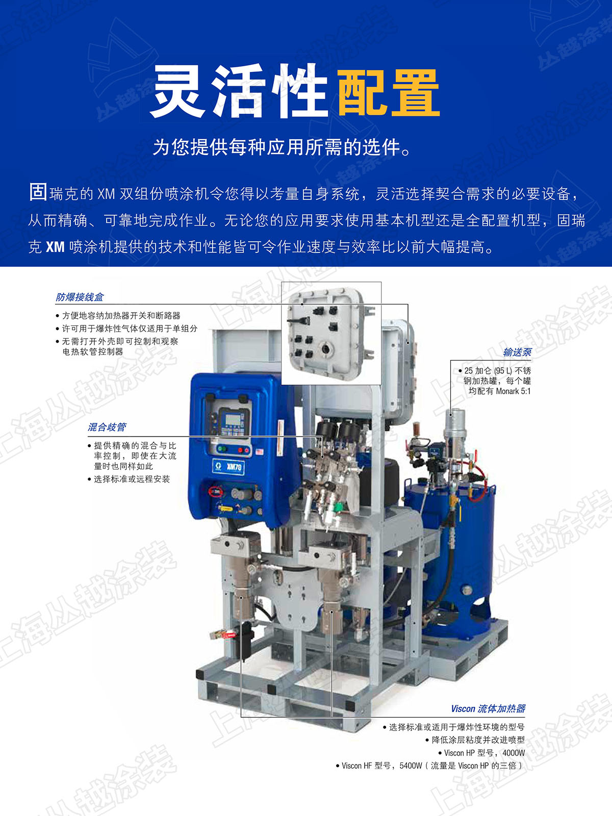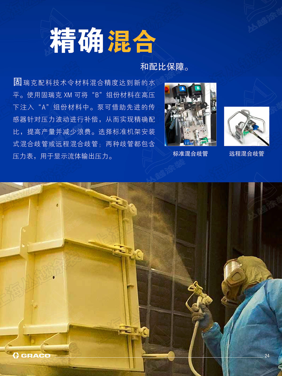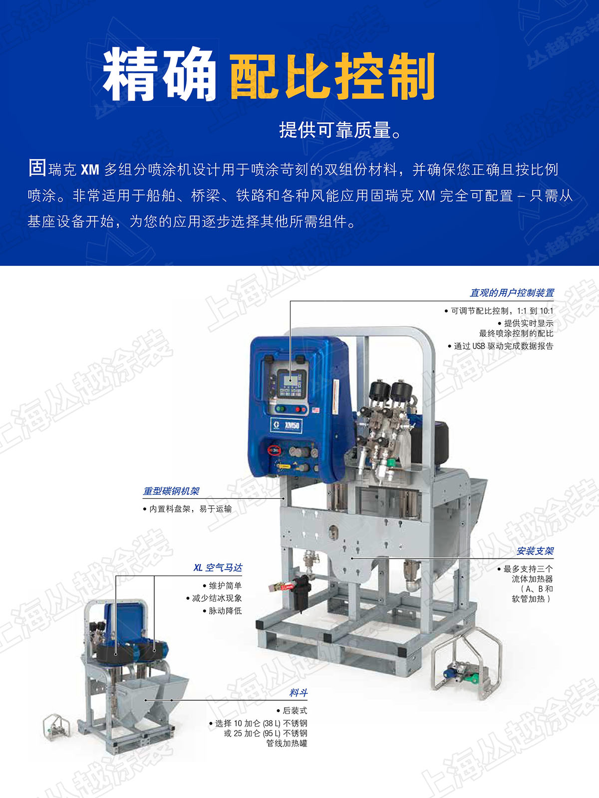 • 电子可调配比,比例范围1:1~10:1; • 混合配比精度为±5%; • 智能控制,实时监控,故障自诊断报警停机功能; • 自由选配,可在基本机型的基础上,增选加热器、供料泵、输送泵、料斗等部件; • 用于海事造船、桥梁、管道、车辆及风电等重防腐特涂行业。 本页快速跳转目录: |